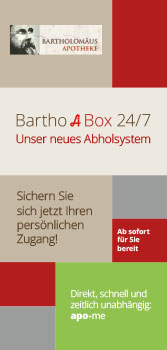 Produkte bestellen und ganz bequem bei uns in der Apotheke oder in der BarthoBox 24/7 (im Foyer, Zugang mit Bankomatkarte) abholen.